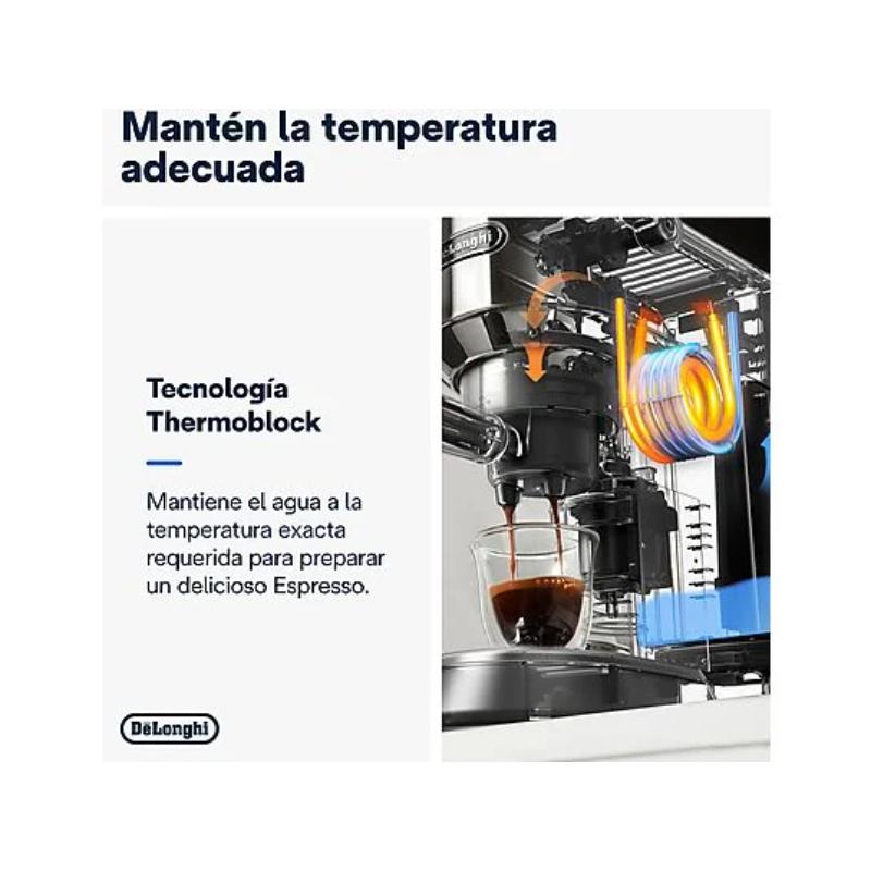 Cafetera Espresso Manual De’Longhi Dedica 15 Bares, 1300W. Calentamiento Thermoblock en 40 segundos. Diseño ultra-compacto (14.9 cm ancho). Compatible con café molido y monodosis. Color Negro.