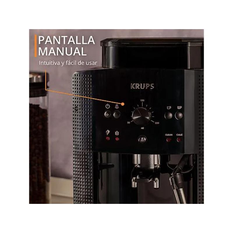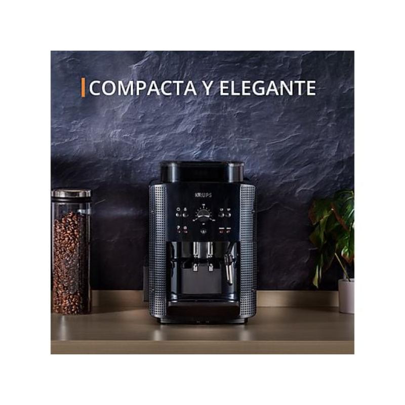 Cafetera Krups Roma Superautomática 15 Bares, 1450W. Tecnología Thermoblock Compacto, molinillo cónico de metal (3 grados) y 3 niveles de temperatura. Vaporizador manual y Pantalla LCD.