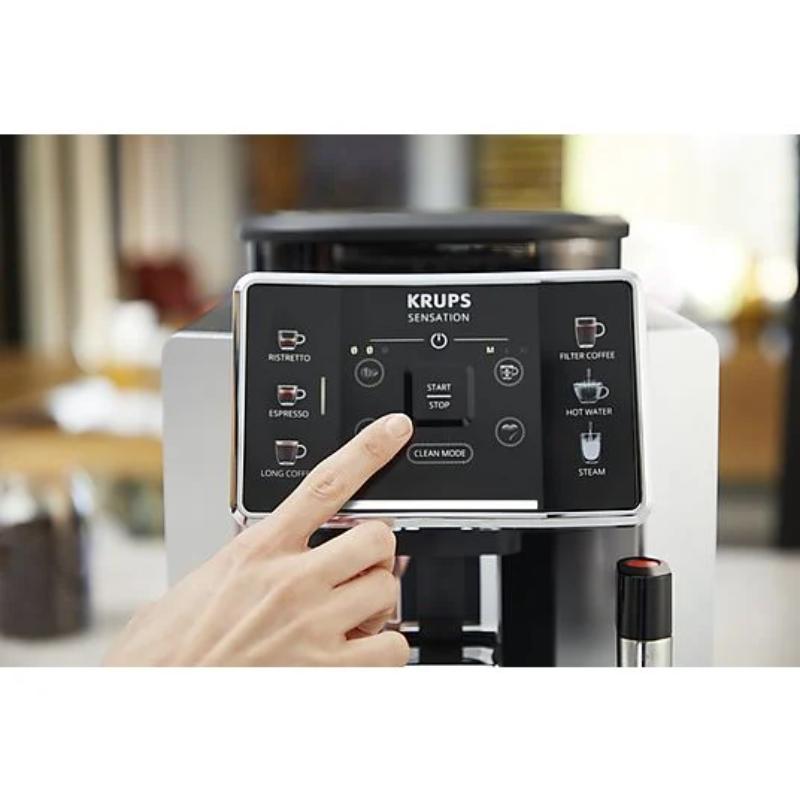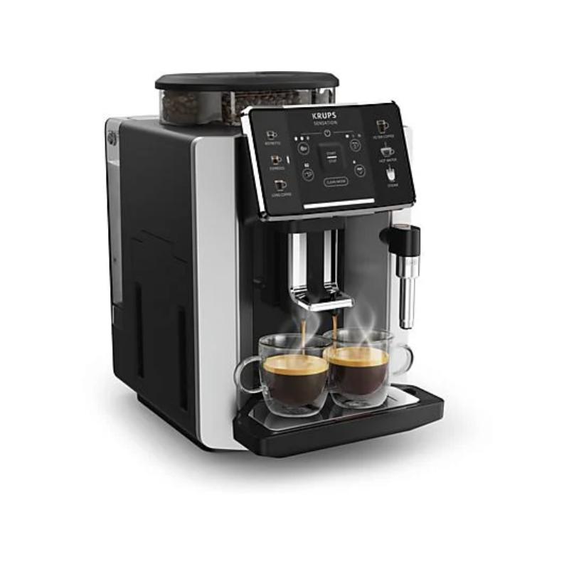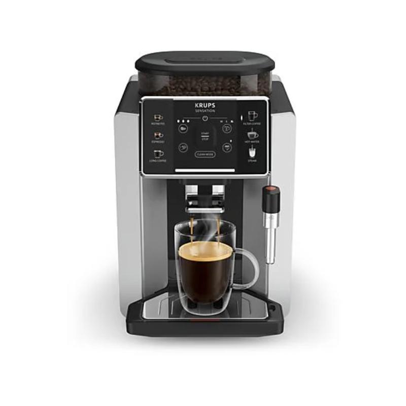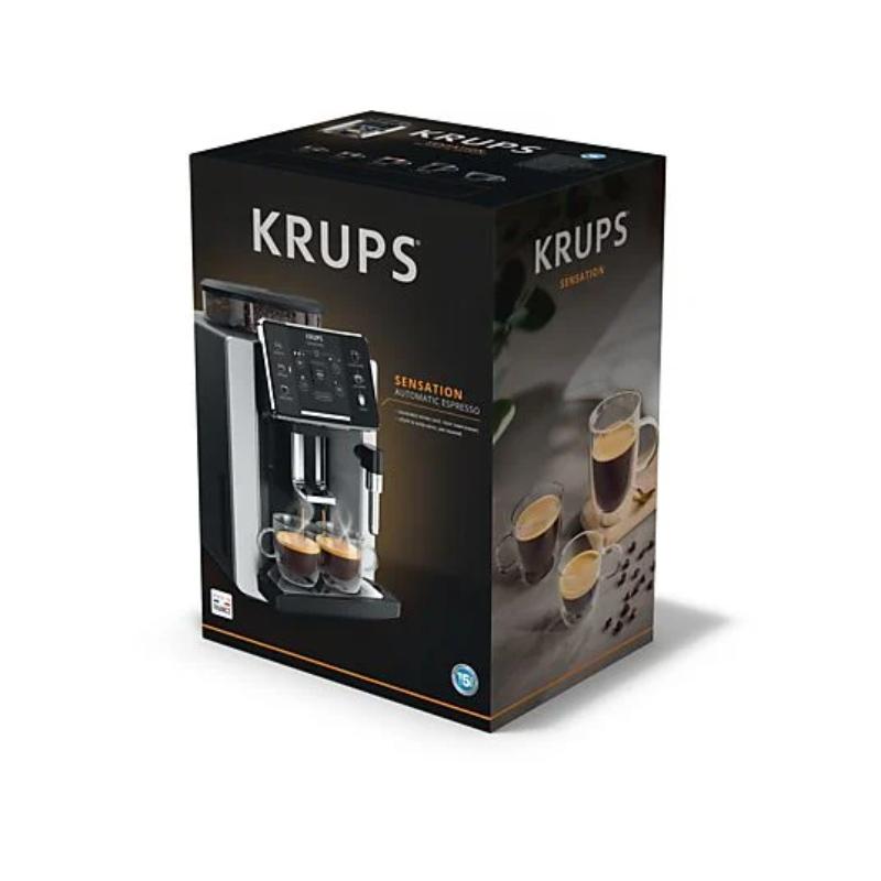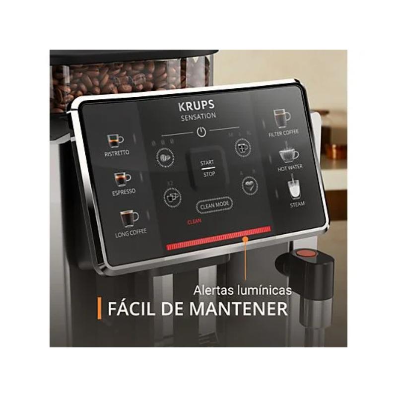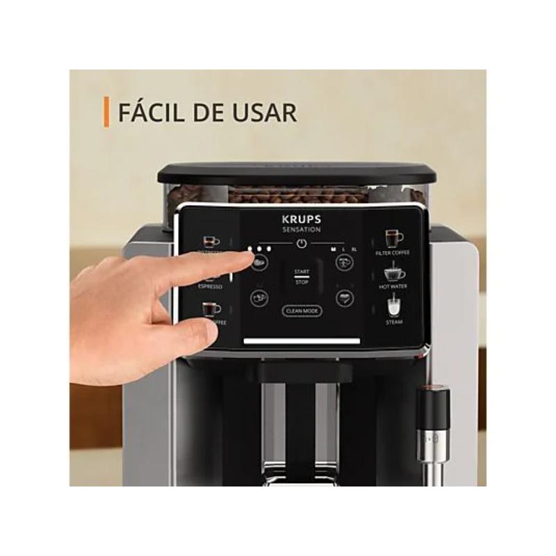 Cafetera Krups Sensation C90 Superautomática 15 Bares, 1450W. Tecnología Barista Inside, molinillo integrado y 6 programas. Vaporizador de leche manual. Pantalla táctil. Color Plata.
