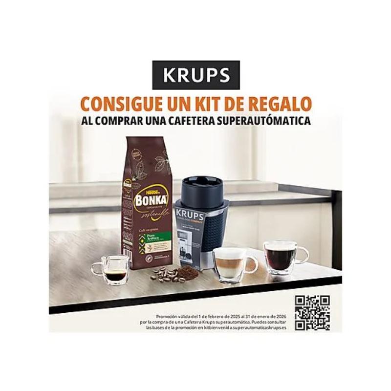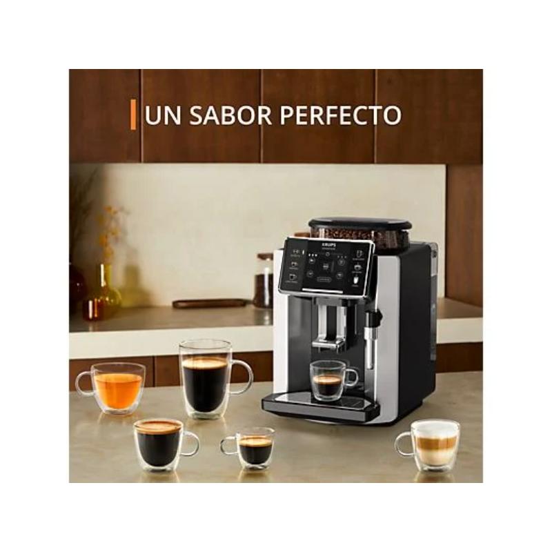Cafetera Krups Roma Superautomática 15 Bares, 1450W. Tecnología Thermoblock Compacto, molinillo cónico de metal (3 grados) y 3 niveles de temperatura. Vaporizador manual y Pantalla LCD.