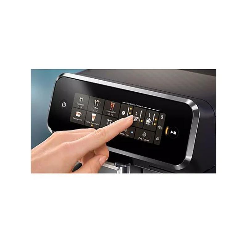 Cafetera Philips Superautomática Serie 2200, 15 Bares, 1500W. Molinillo integrado de 12 ajustes. Vaporizador de leche clásico. Incluye Filtro AquaClean. Pantalla táctil.