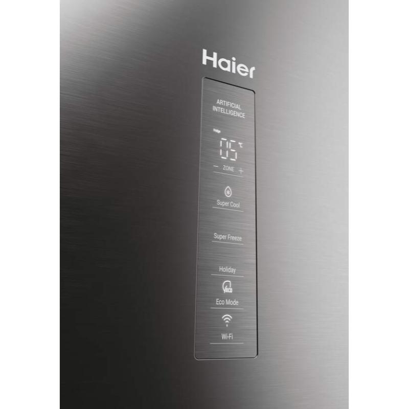 Frigorífico Combi Haier, 205 cm, 409 L, Clase A (Máxima Eficiencia). Inox. Total No Frost, MyZone/Humidity Zone, Ultra silencioso (35 dB), Wi-Fi (hOn).