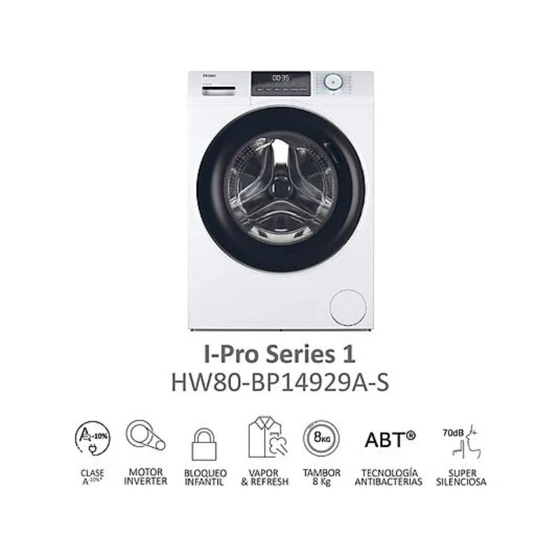 Lavadora carga frontal – Haier I-Pro Series 1 HW80-BP14929A-S, 8 kg, 1400 rpm, Motor Inverter, Antibacterias, Blanco