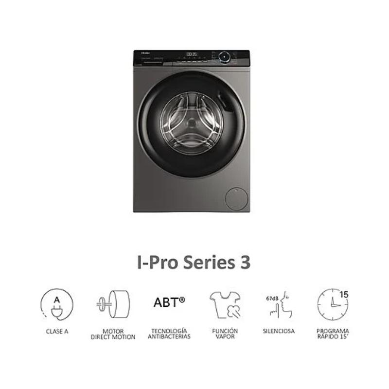 Lavadora carga frontal – Haier I-Pro Series 3 HW90-B14939S8-IB, 9kg, 1400rpm, Direct Motion, Vapor, Antibacterias, Antracita