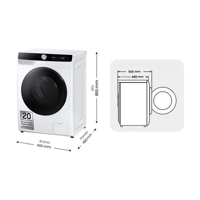 Lavadora Secadora Samsung 9 kg Lavado + 5 kg Secado. Diseño de Fondo Reducido (48 cm). Incluye Autodosificación y control inteligente AI Control. Programas AirWash y Lavado Silencioso. Color Blanco.