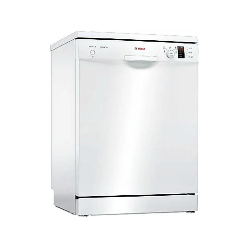 Lavavajillas Bosch Serie 2 de Libre Instalación (60 cm) con 12 servicios, Clase E. Bajo consumo de agua (9.5 L/ciclo) y 5 programas (incluyendo 1 hora 65 °C). Función Media Carga y Display con tiempo restante. Color Blanco.