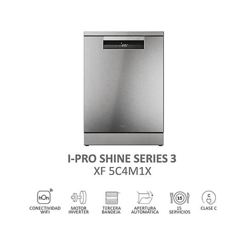 Lavavajillas – Haier I-Pro Shine Series 3 XF 5C4M1X, 15 servicios, 10 programas, 60 cm, Motor Inverter, Wi-Fi, Gris
