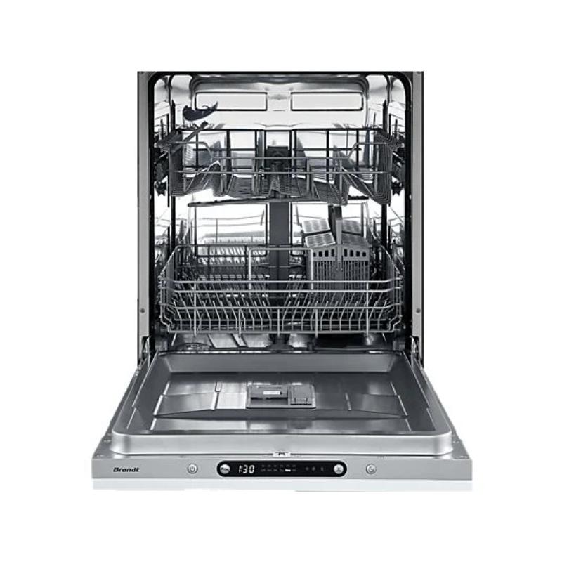 Lavavajillas BRANDT Integrable (60 cm) de 13 servicios, Clase D. Nivel de ruido de 47 dB(A). Incluye Media Carga, Cesta Ajustable y sistema de seguridad OverFlow Antifugas.