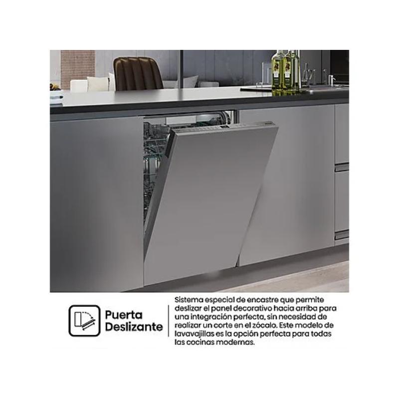 Lavavajillas Hisense Integrable (45 cm) de 11 servicios, Clase D. Motor Inverter, Tercera Bandeja para Cubiertos y bajo consumo de agua (9.5 L/ciclo). Incluye programa Higiene y función Media Carga.