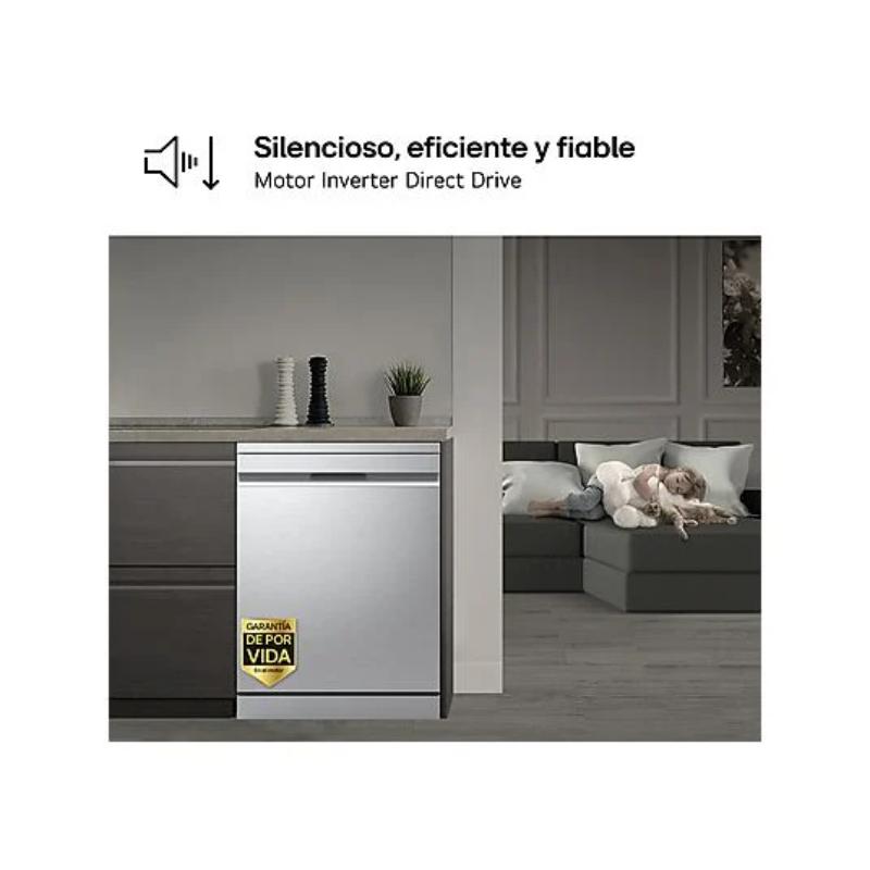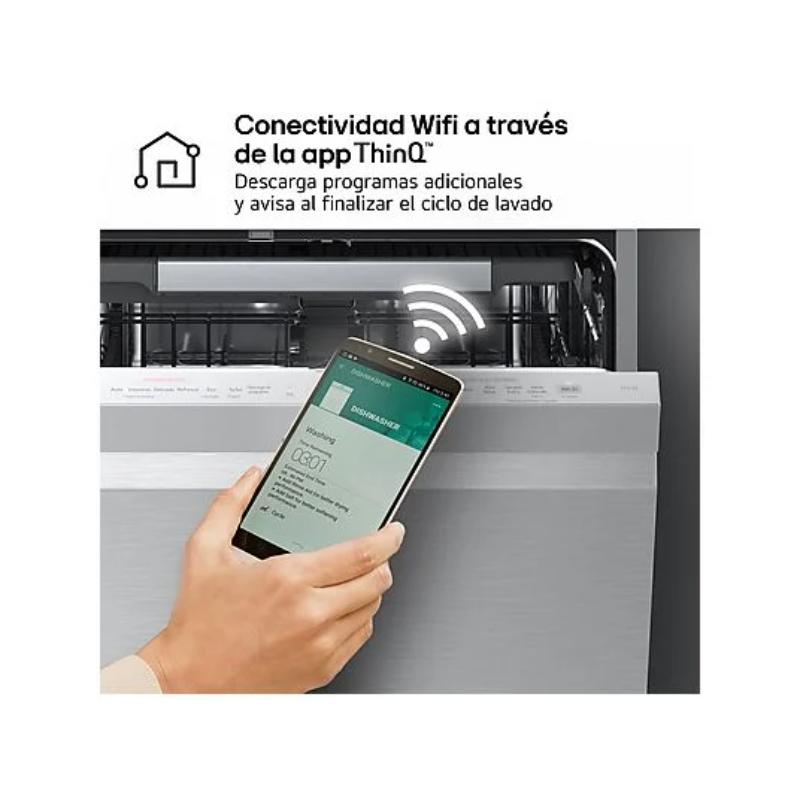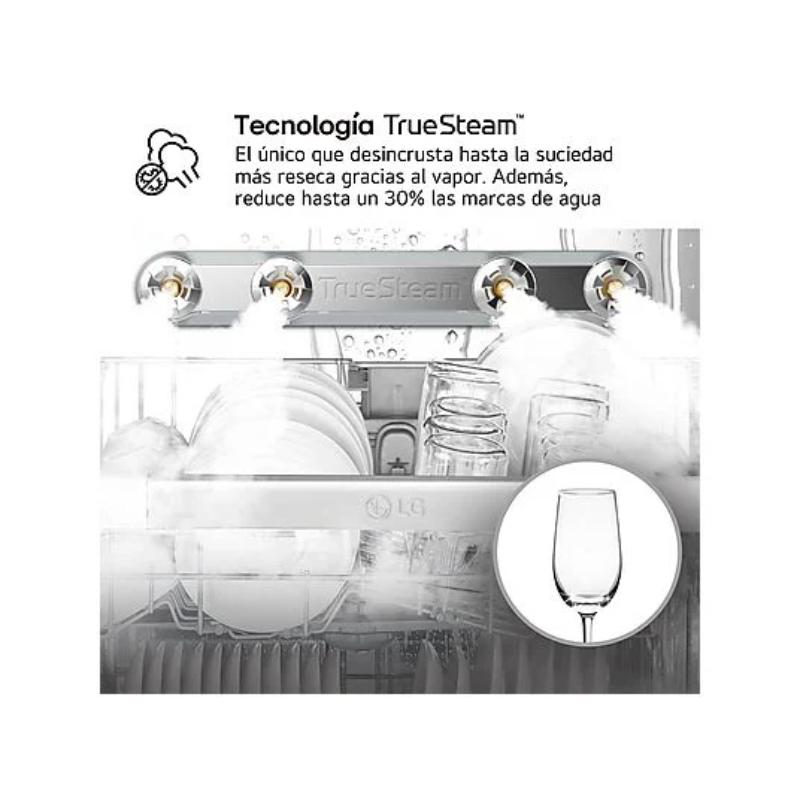 Lavavajillas LG de Libre Instalación (60 cm) con 14 servicios, Máxima Clase A. Tecnología de vapor TrueSteam™, limpieza QuadWash™ y conectividad Wi-Fi. Incluye Tercera Bandeja y acabado en Inox Antihuellas.