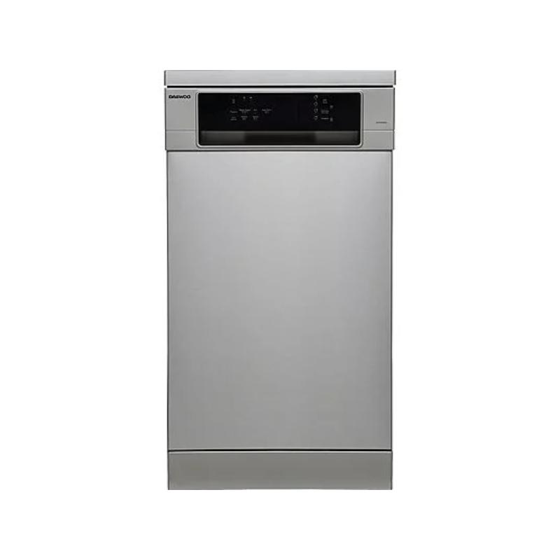 Lavavajillas Daewoo de Libre Instalación (45 cm) con 10 servicios, Clase E. Nivel de ruido de 47 dB(A). Incluye programa Hygiene 70 °C y ciclos rápidos. Función Media Carga y acabado en Acero Inoxidable.