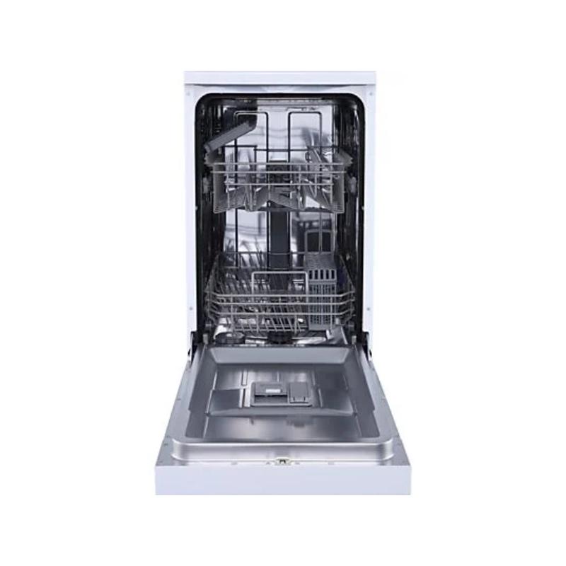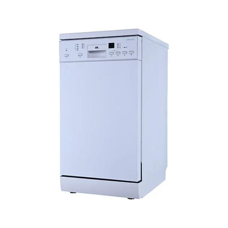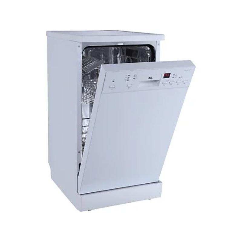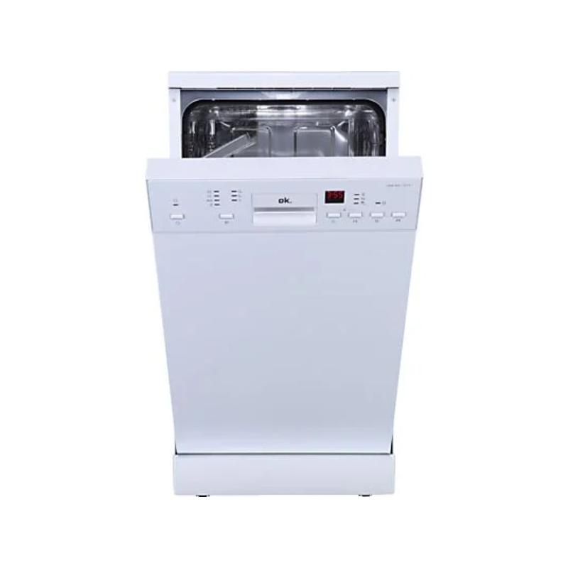 Lavavajillas ok. de Libre Instalación (45 cm) con 10 servicios, Clase E. Nivel de ruido de 49 dB(A) y bajo consumo de agua (9 L/ciclo). Incluye 7 programas y función Media Carga. Acabado en Blanco.