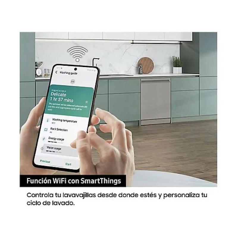 Lavavajillas Samsung de Libre Instalación (60 cm) con 14 servicios, Clase B. Extra silencioso (43 dB). Conectividad Wi-Fi, bajo consumo de agua (8.5 L/ciclo) y función de secado SelfDry. Acabado en Inox.