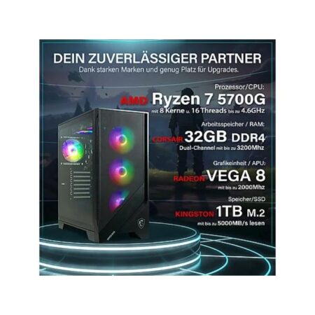 PC Gaming DEEPGAMING NEXUS con AMD Ryzen 5 5600G, RTX 5050 6GB, 32GB RAM, 1TB NVMe SSD y Windows 11 Pro. Equipo de entrada/media perfecto para juegos en 1080p.