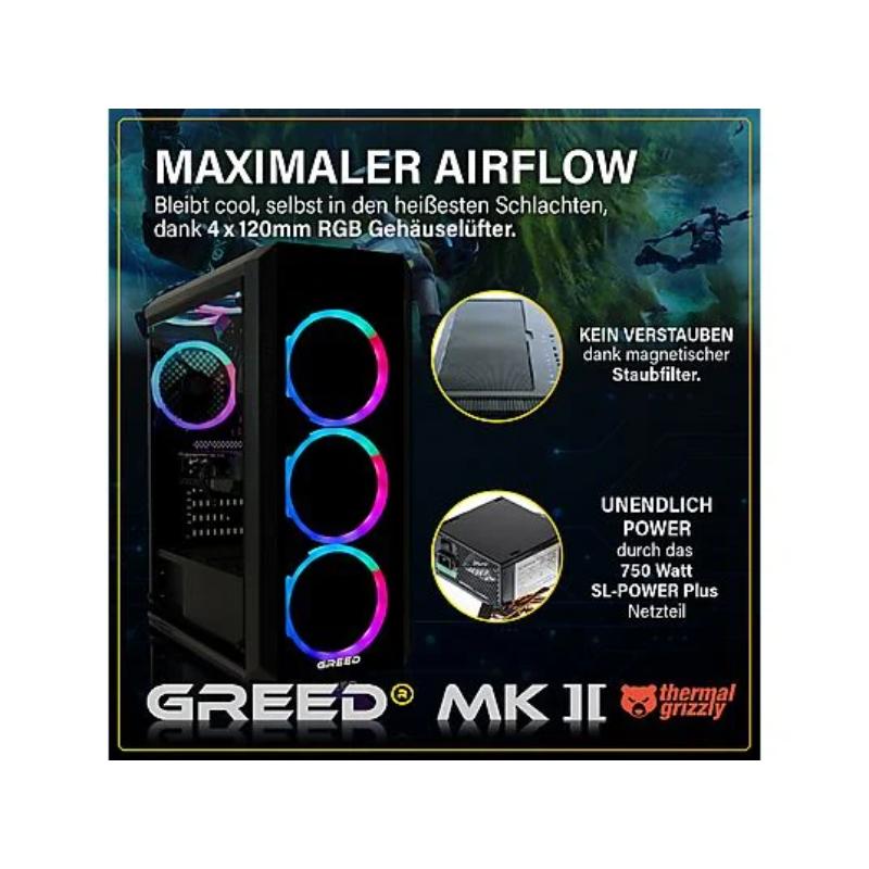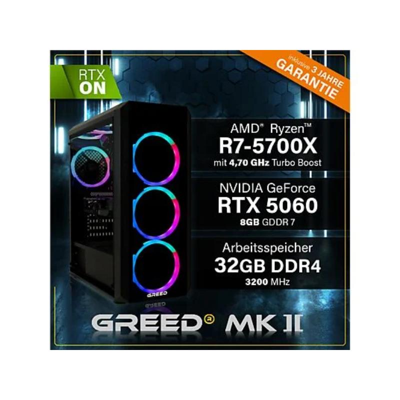 PC Gaming – GREED MK2 AMD | Gaming Ordenador / Computer, AMD Ryzen 7 5700X, 32 GB RAM, 1000 GB SSD, GeForce RTX™ 5060, Windows 11 Pro, Negro