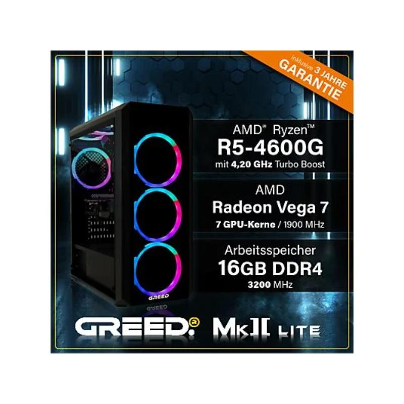 PC Gaming – GREED MK2 AMD Lite, AMD Ryzen 5 4600G, 16 GB RAM, 512 GB SSD, Radeon™ RX Vega 7, Windows 11 Pro, Negro