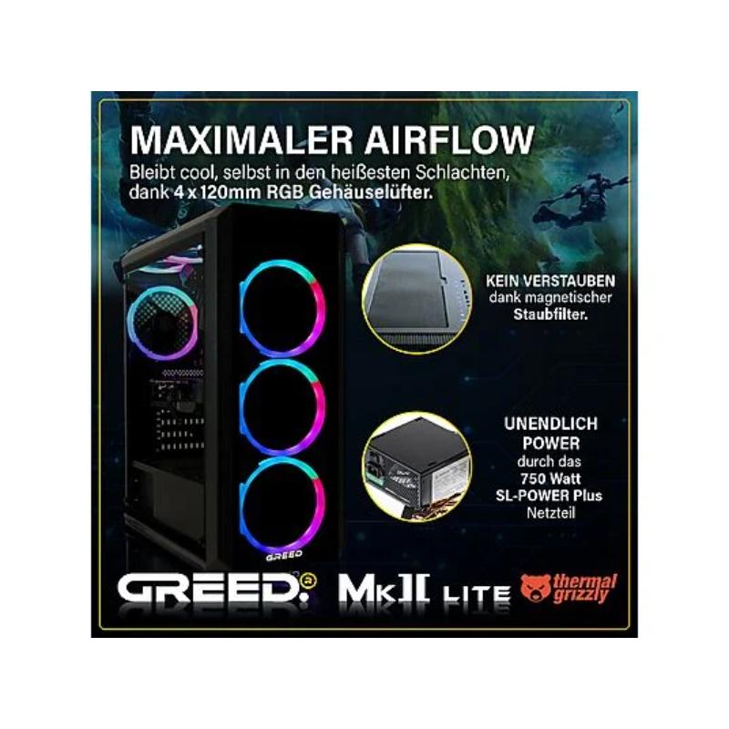 PC Gaming GREED MK5 AMD con Ryzen 5 9600X, RTX 5070 12GB, 32GB DDR5 RAM, 1TB SSD y Refrigeración Líquida. Potencia de nueva generación para gaming en 1440p y 4K.