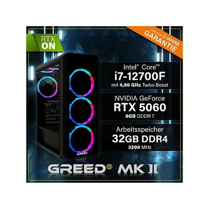 PC Gaming – GREED MK2 Intel Gaming Ordenador Computer, Intel Core i7-12700F, 32 GB RAM, 1000 GB SSD, GeForce RTX™ 5060, Windows 11 Pro, Negro