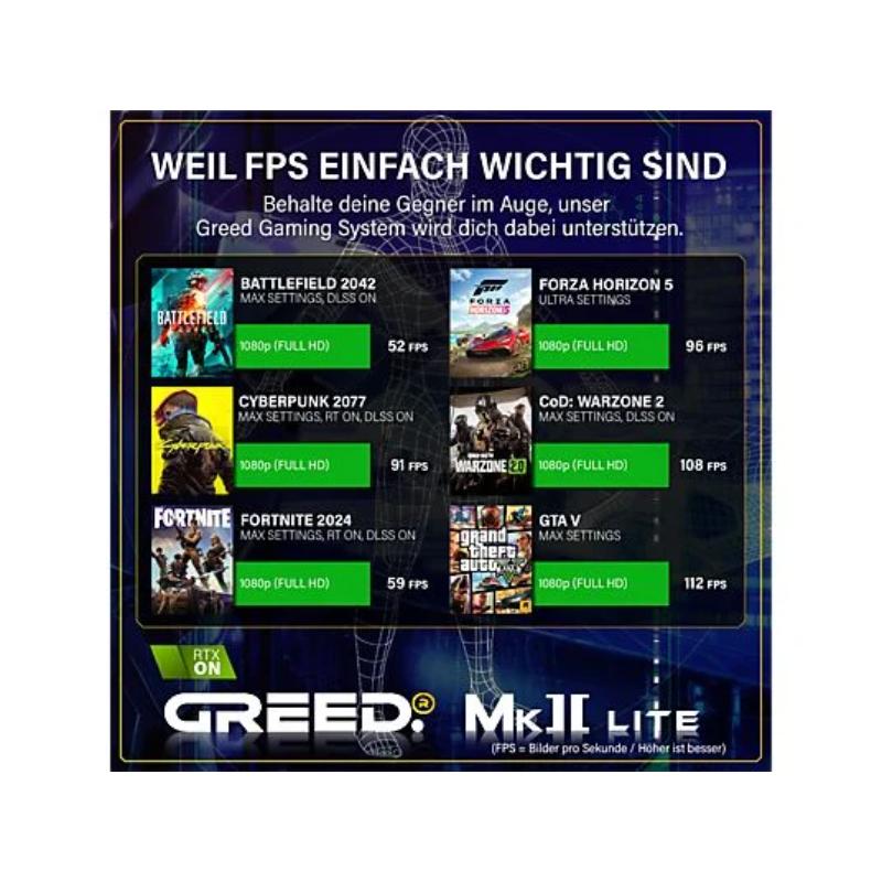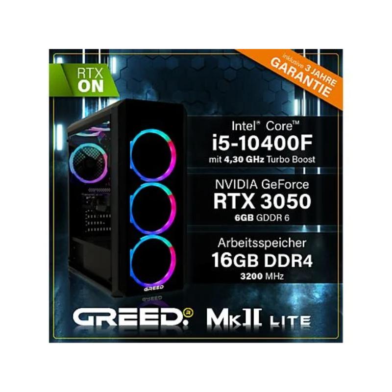 PC Gaming – GREED MK2 Intel Lite Gaming Ordenador Computer, Intel Core i5 10400F, 16 GB RAM, 512 GB SSD, GeForce RTX™ 3050, Windows 11 Pro, Negro