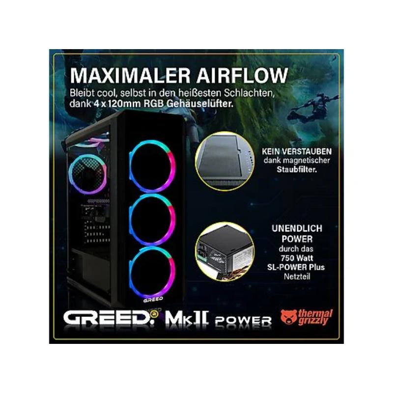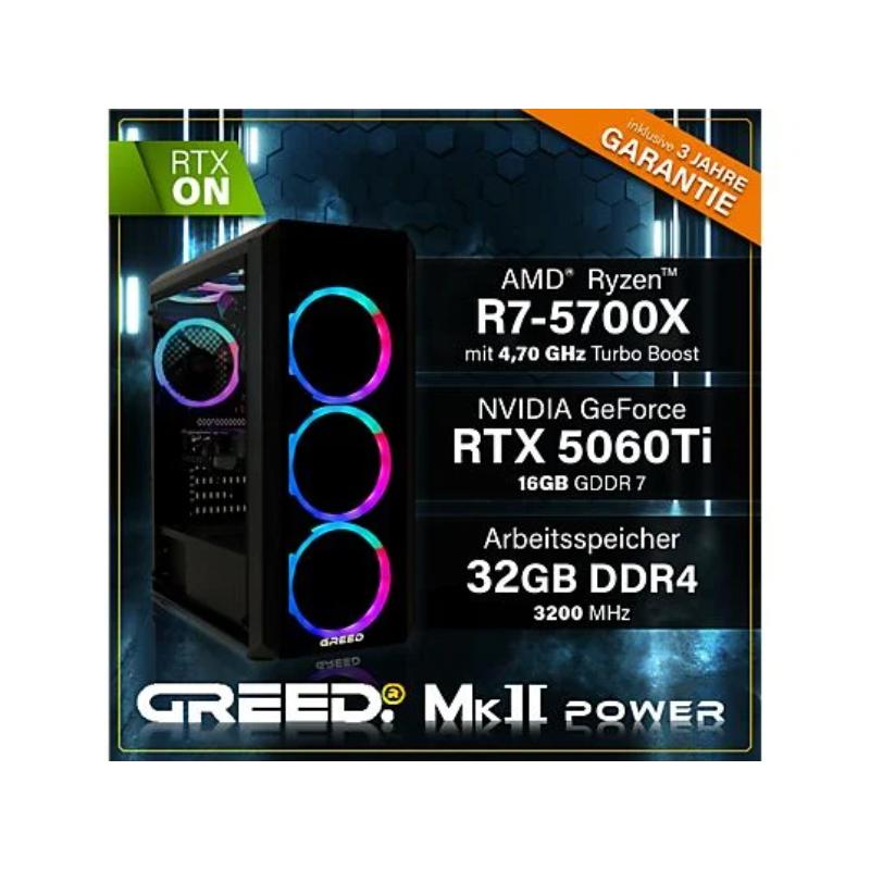 PC Gaming – GREED MK2 Power AMD Gaming Ordenador Computer, AMD Ryzen 7 5700X, 32 GB RAM, 1 TB SSD, GeForce RTX™ 5060 Ti, Windows 11 Pro, Negro