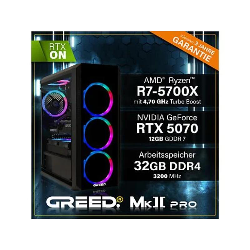 PC Gaming – GREED MK2 Pro AMD Gaming Ordenador Computer, AMD Ryzen 7 5700X, 32 GB RAM, 1 TB SSD, GeForce RTX™ 5070, Windows 11 Pro, Negro