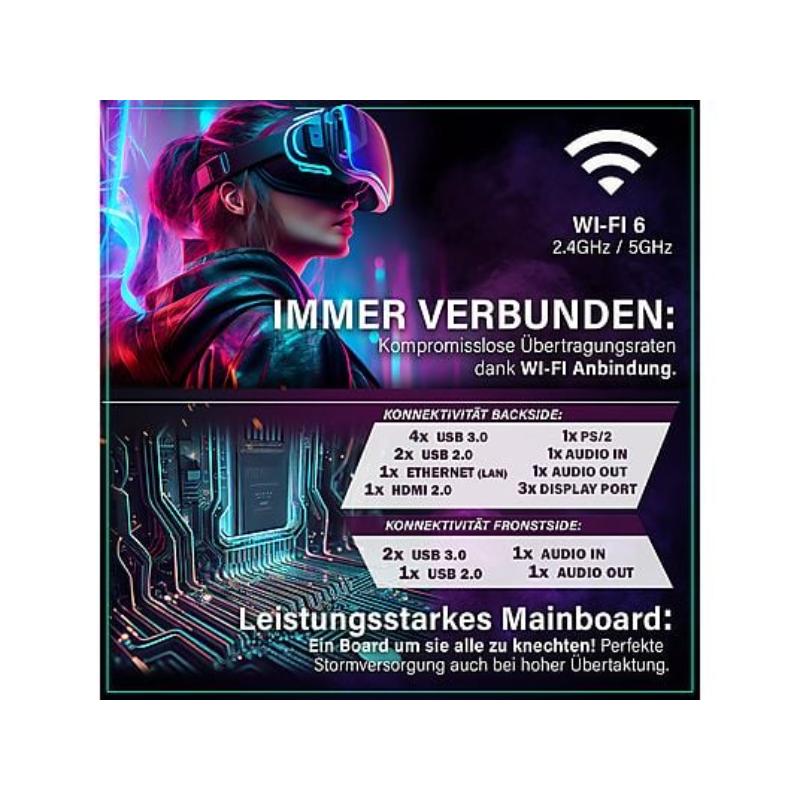 5x USB 3.0, 3x USB 2.0, 1x HDMI 2.0, 3x Display Port, 2x Audio IN, 2x Audio OUT, 1x Ethernet ( LAN), 1x PS/2, Wifi