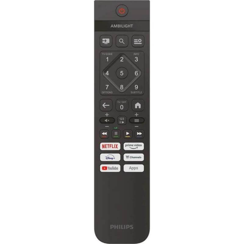 Smart TV, Audio y Conectividad El televisor utiliza el sistema operativo Titan OS, que proporciona acceso a las principales aplicaciones de streaming como Netflix, Amazon Prime Video, Disney+, HBO y YouTube. El audio es de 6W RMS con decodificación Dolby Digital. La conectividad incluye Wi-Fi 4 (802.11n). Dispone de 3 puertos HDMI (con ARC/CEC EasyLink) y 2 puertos USB 2.0.