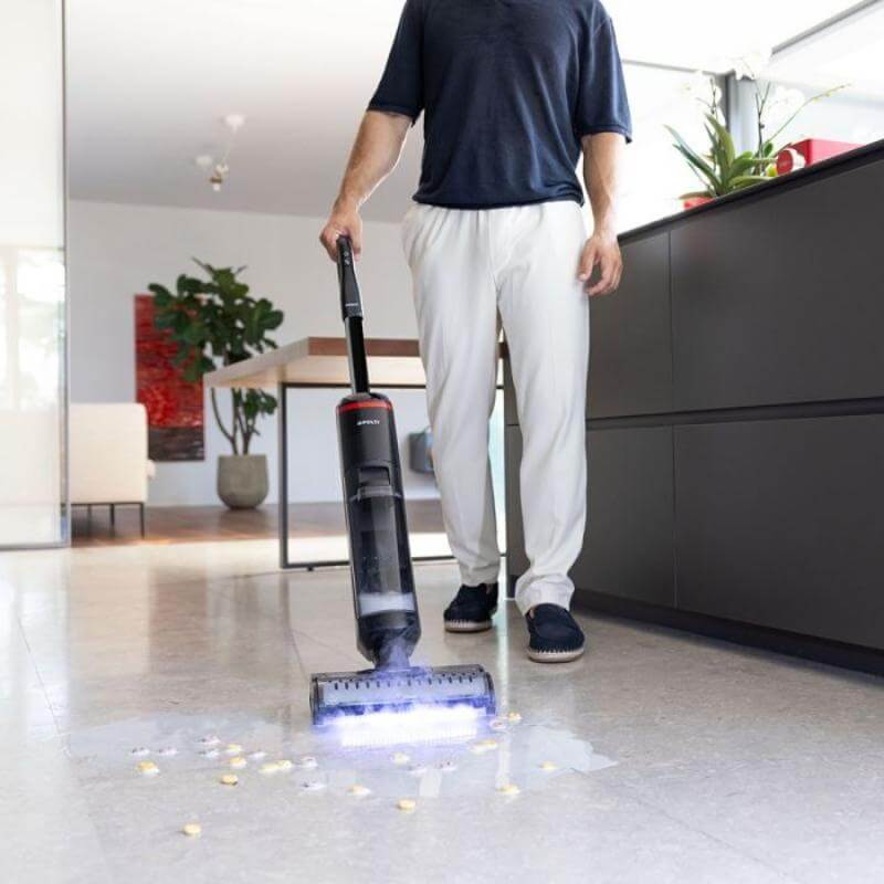 El Rowenta GZ7035 es un potente aspirador escoba 3 en 1 que aspira, friega y seca en una sola pasada. Con batería de 21.6V y función de autolimpieza, es apto exclusivamente para suelos duros.