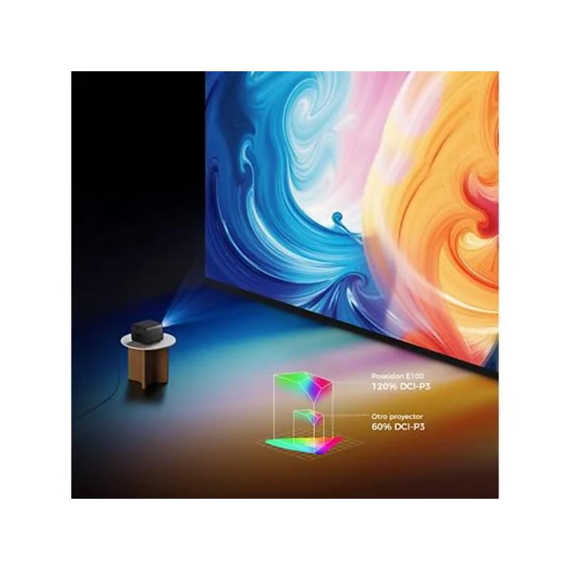 1× proyector Poseidon E100, 1× cable HDMI, 1× adaptador de corriente, 1× manual de usuario, 1× mando a distancia |