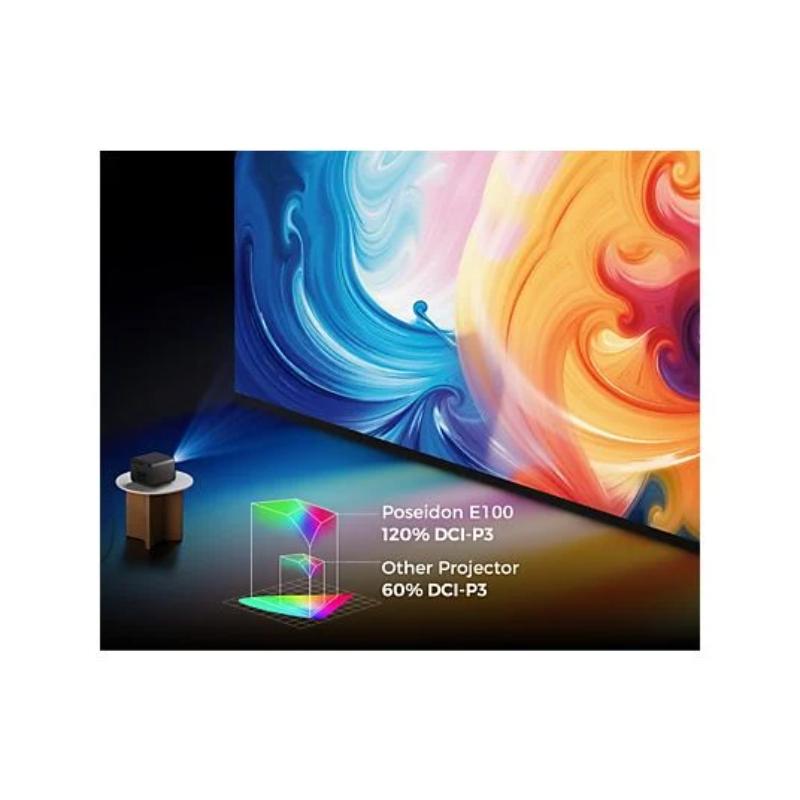 1× proyector Poseidon E100, 1× cable HDMI, 1× adaptador de corriente, 1× manual de usuario, 1× mando a distancia |
