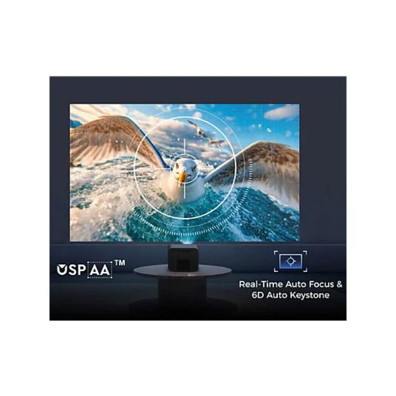 Proyector DLP 4K UHD compatible con 1,800 ANSI lúmenes y una fuente de luz LED de 100,000 horas de duración. Integra Smart Google TV 11.0, ofrece funcionalidad Full 3D y cuenta con conectividad WiFi 5G y Bluetooth 5.3. Incluye altavoces de 20W.
