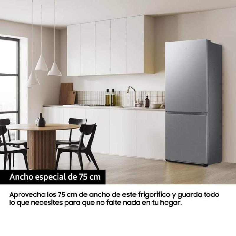 El Frigorífico Combi Samsung RB53DG703CS9EF es un modelo independiente de 203 cm de altura que destaca por su ancho especial de 75,9 cm, ofreciendo una impresionante capacidad neta total de 538 litros (370 L frigorífico / 168 L congelador) gracias a la tecnología SpaceMax. Presenta un acabado en Acero Inoxidable.
