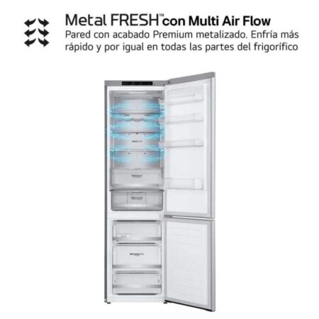 Frigorífico Combi LG, 203 cm, 343 L, Clase D. Inox Antihuellas. Silencioso (35 dB). Full No Frost Inverter, Multi Air Flow.