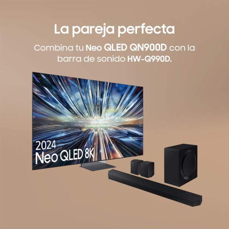 Samsung Neo QLED 8K TV 65″. Procesador NQ8 AI Gen3 (512 redes neuronales), 8K AI Upscaling Pro. 240Hz en 4K, FreeSync Premium Pro. Audio 90W 6.2.4ch Dolby Atmos. Infinity Air Design y Slim One Connect.