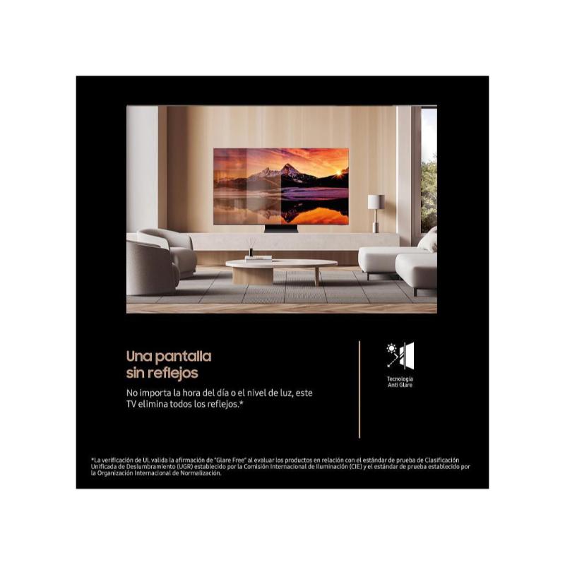 El ecosistema Tizen OS (One UI 2025) integra Samsung TV Plus (más de 120 canales gratuitos), SmartThings Hub, control por voz con Bixby, Alexa y Google Assistant, y herramientas exclusivas de IA como Live Translate, Click to Search o AI Energy Mode, que ajusta el brillo y reduce el consumo de forma inteligente.
