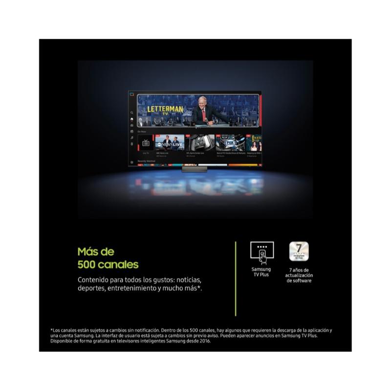 Ecosistema Smart Tizen y Sonido Envolvente Equipado con el sistema operativo One UI Tizen, el televisor ofrece una experiencia fluida e intuitiva con el beneficio de 7 años de actualizaciones de software gratuitas y la seguridad integral de Samsung Knox Security. Disfrute de contenido ilimitado con más de 500 canales y Samsung TV Plus. El innovador SolarCell Remote se recarga con luz, eliminando la necesidad de pilas. El audio de 20W RMS (2.0 canales) se potencia con Object Tracking Sound Lite (OTS Lite) para un efecto 3D virtual y Q-Symphony para una sincronización perfecta con barras de sonido externas.