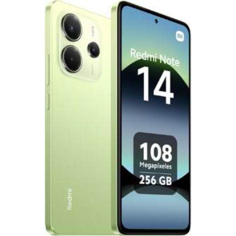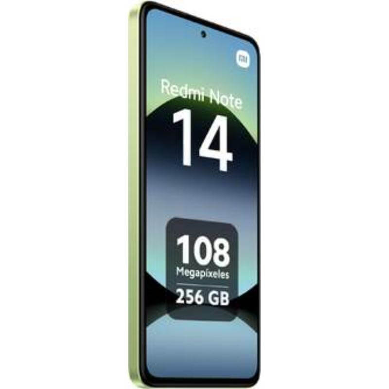 El Xiaomi Redmi Note 14 en color Verde (Lime Green) destaca por su cámara de 108 MP, procesador MediaTek Helio G99-Ultra y una gran pantalla AMOLED de 6,67 pulgadas a 120 Hz.